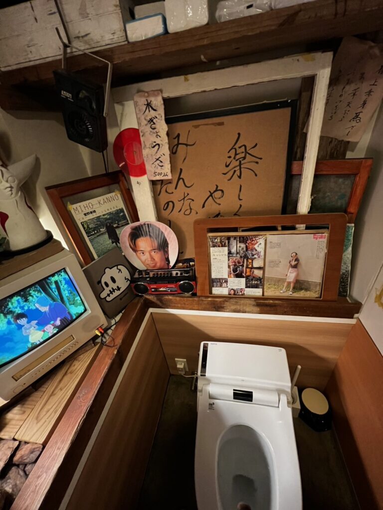 そしてもちろん、トイレも特徴的!トイレの内装は特に凝っていて年に一度、内装のテーマを変えるらしい。今回は”90年代の日本”をテーマにしたトイレ。