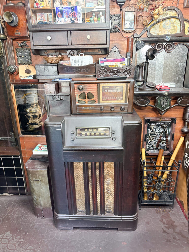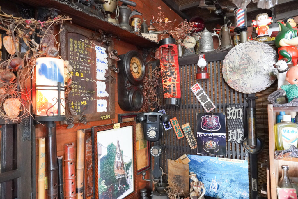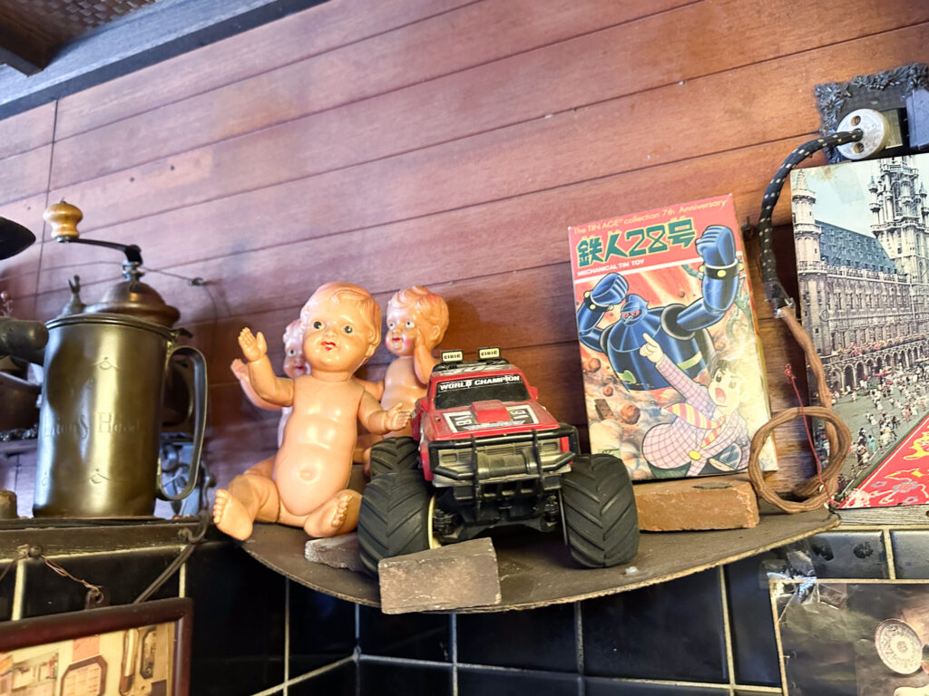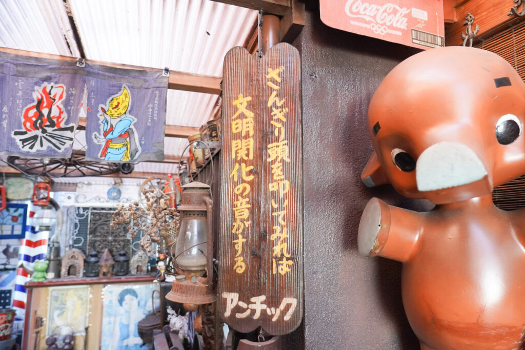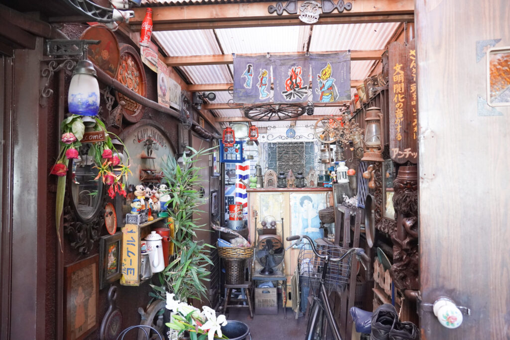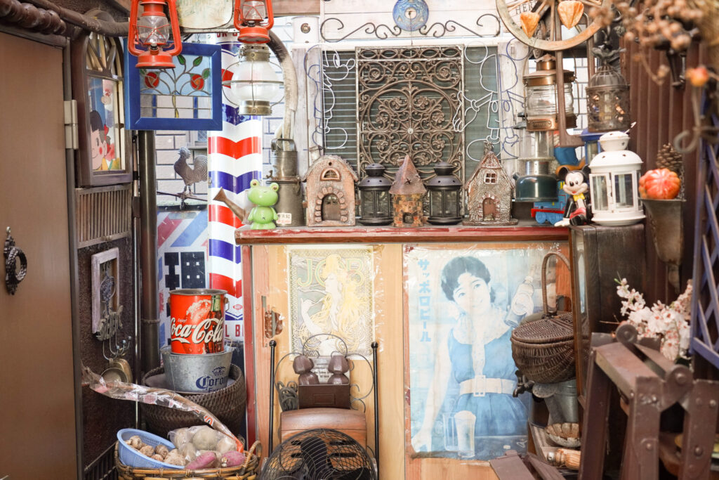 店内に足を踏み入れると、視線のやり場に困る。 壁、棚、天井、至る所を埋め尽くすアンティークの山、山、山。