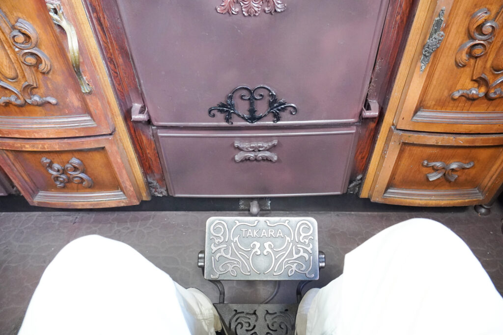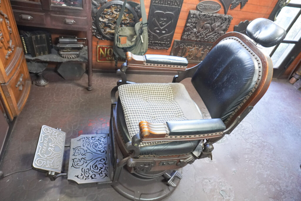 再び店内に戻り、理容椅子に座る。 これもまたタダモノではない。大正時代に使われていたという重厚な椅子を、現代でも使えるよう自ら電動に改造したものだ。 なんでも、鳥取と博多に同じ椅子を使っている店舗があるそうだが、そのお店の椅子も高杉さんがまとめて注文してあげたそうだ。おそるべきバイタリティ。