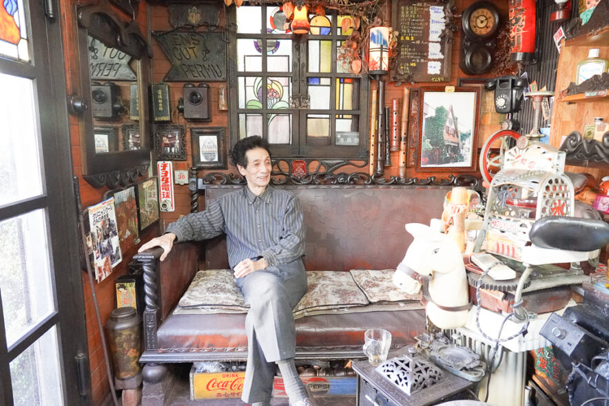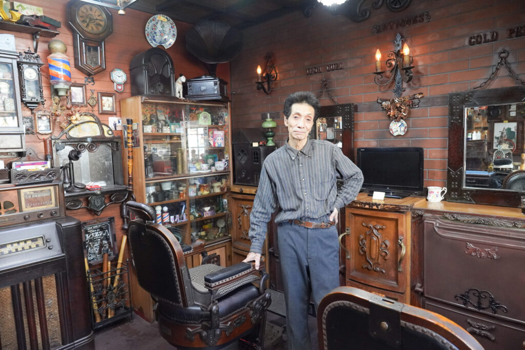 1971年(昭和46年)創業。 この城の主「高杉さん」は、理容師であり、アンティークコレクターであり、そして尺八奏者でもある。 今回は、カオスと技巧が同居するこの「男の隠れ家」を訪ねた。
