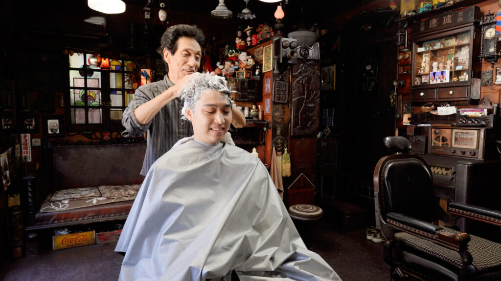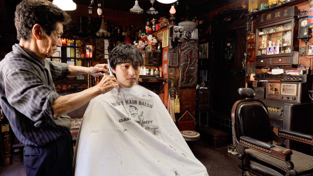 また、ASMR YouTuber「ヘアカット・ハリー」もこの店を訪れている。 「とにかく音を撮りたい」という要望で、ハリーの胸元はもちろん、ご主人の手元にまでピンマイクを装着。「ジョリジョリ」という剃髪音を極限まで拾うため、普段よりオーバーな動作を求められた。 「プロから見たら『あいつ、無理やり剃ってるな』って思われるんじゃないかって、ヒヤヒヤしたよ」 職人としてのプライドと、パフォーマーとしてのサービス精神の狭間での葛藤を振り返ってくれた。