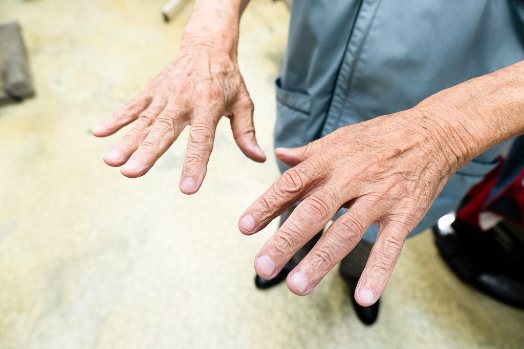 富一さんの手も撮らせていただいた。「歳の割には指が太くて立派なんですよ」 と言う通り、確かに太く、力強い指だ。この手一つで、戦後の混乱も、高度経済成長も、奥様との別れも乗り越えてきた。職人の手は、口よりも多くを語る。